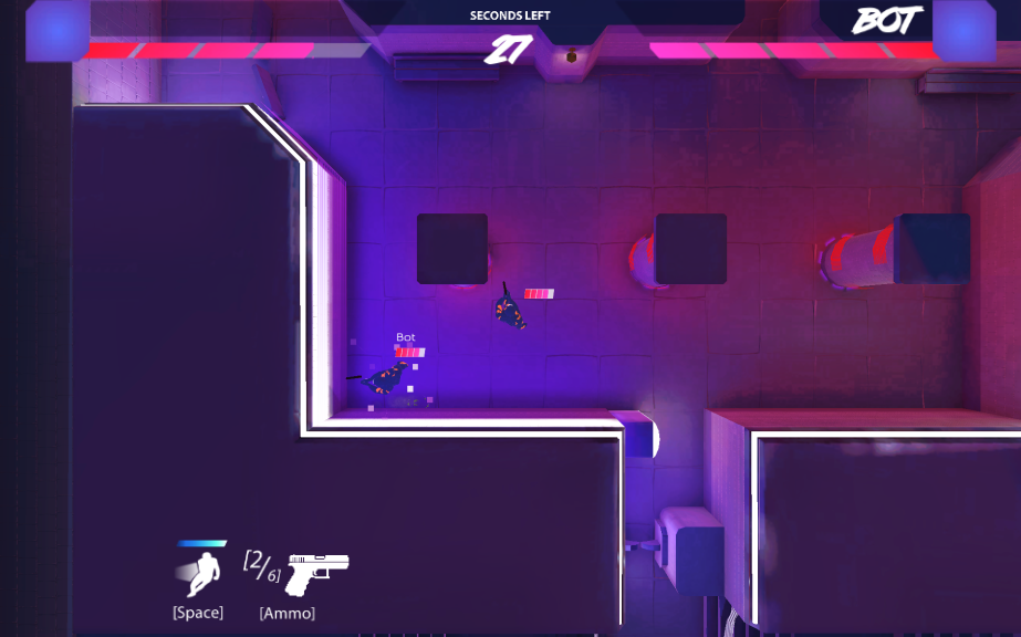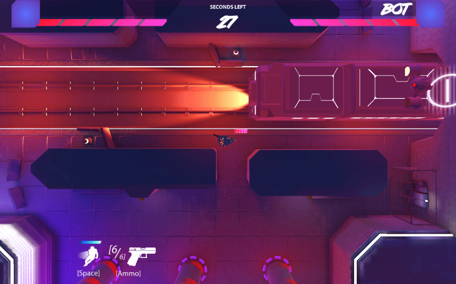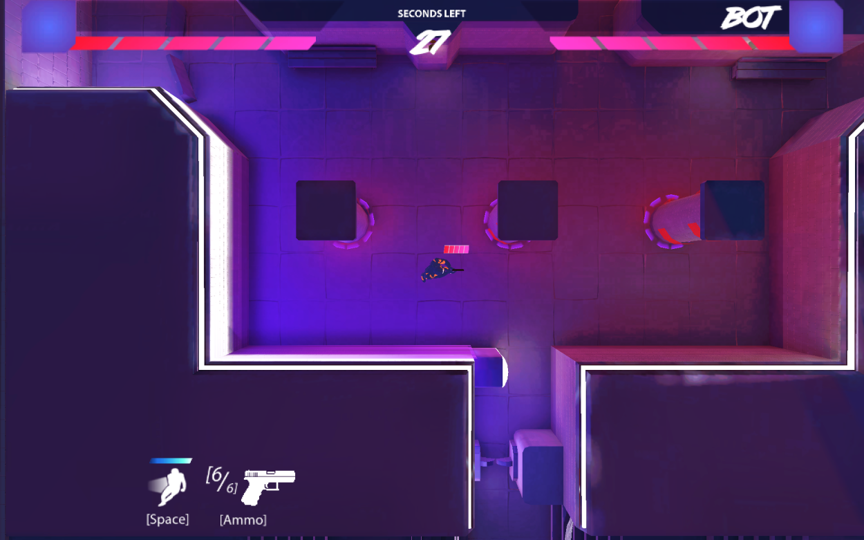 I was one of the core engineers on this project. The game was developed in Unity and built for WebGL. I wrote many components of the gameplay via C#, implementing player movement, gun firing, the damage system, hazards, powerups, networking via Photon, and more. Since the game was built in WebGL, we were limited to 50 MB for the upfront game size. I played a role in optimizing assets to keep the size well below the 50 MB threshold, and I collaborated with our in-house artist to ensure new assets would fit in the game while improving its presentation.